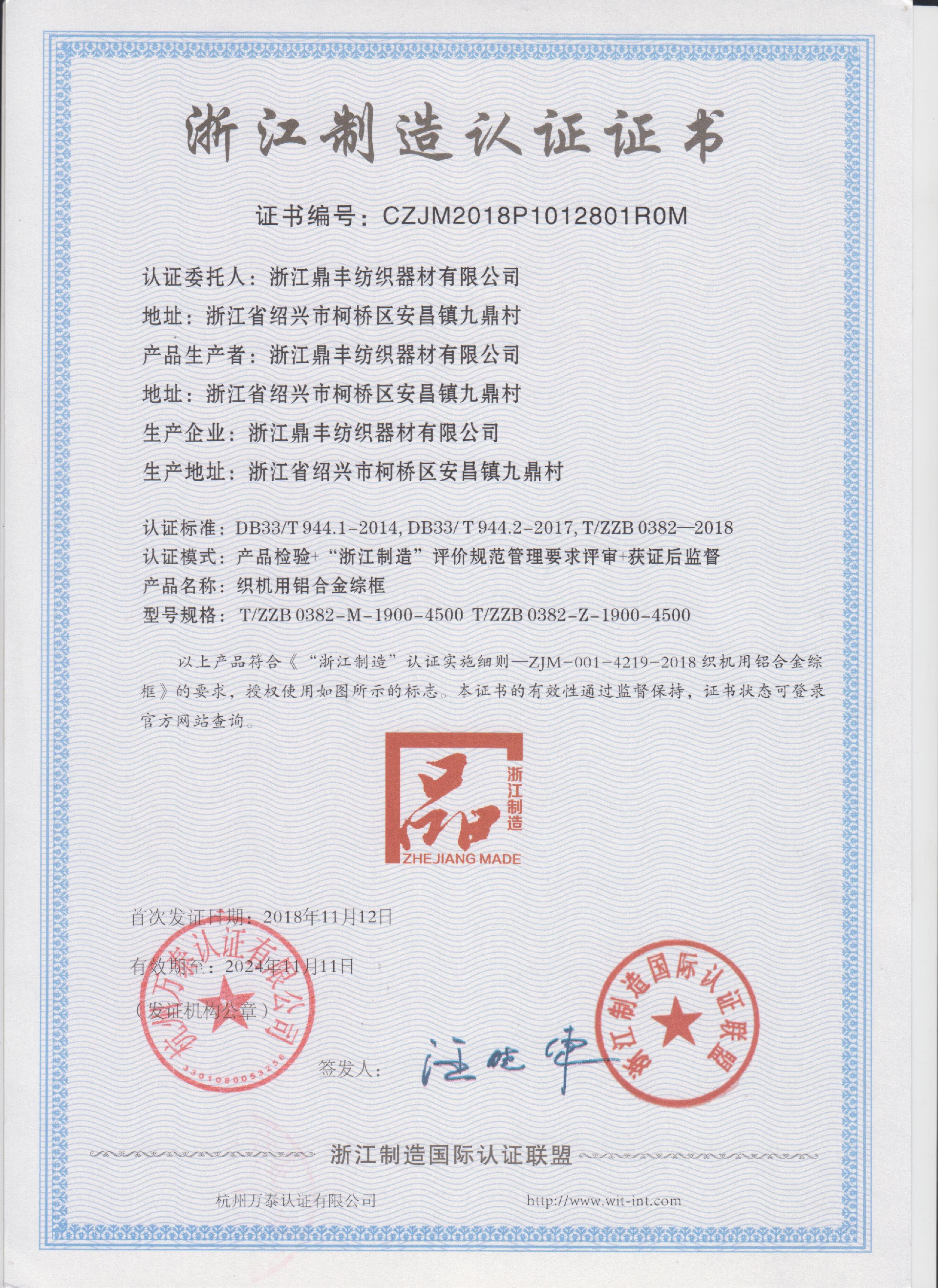 1、貴公司是一家專業(yè)生產(chǎn)各類無梭織機(jī)鋁合金鋼筘、綜框、鋼片綜、停經(jīng)片、經(jīng)軸、織軸和卷布輥等產(chǎn)品及配件的民營企業(yè)。公司成立30多年迅速發(fā)展、占領(lǐng)市場(chǎng)的秘決是什么?余定雅:是高品質(zhì)的產(chǎn)品,完善的售后服務(wù)和大規(guī)模的生產(chǎn)能力保證了浙江鼎豐紡織器材有限公司的產(chǎn)品銷售量在國內(nèi)獨(dú)占鰲頭。為了與全球市場(chǎng)經(jīng)濟(jì)接軌,鼎豐紡